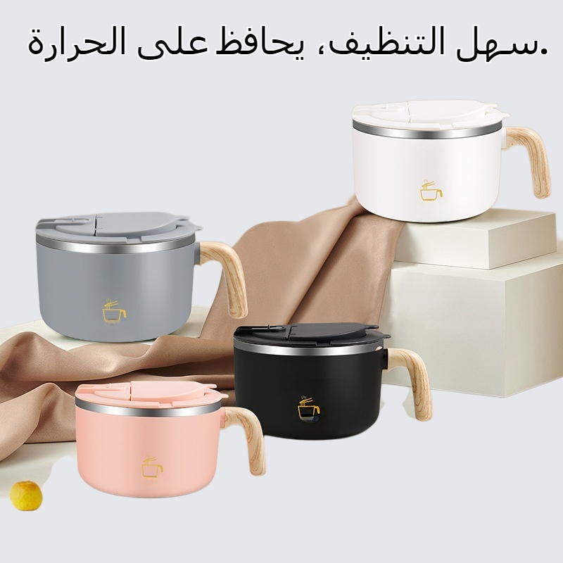 وعاء معكرونة فورية من الفولاذ المقاوم للصدأ 304 مع غطاء محكم، مقاوم للصدأ، سهل التنظيف، يحافظ على حرارة الطعام، مناسب لسكن الطلاب والاستخدام اليومي.