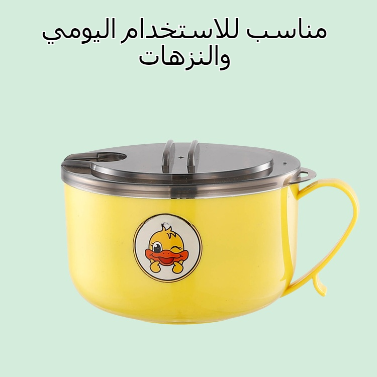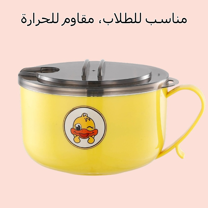 وعاء معكرونة فورية من الفولاذ المقاوم للصدأ 304 مع غطاء، آمن وصحي، سهل التنظيف، مناسب للطالبات، مقاوم للحرارة، مثالي للاستخدام اليومي والتنقل.