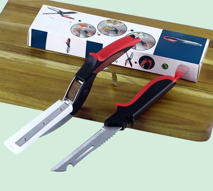 سكين ومقص طعام من الفولاذ المقاوم للصدأ ومقص مطبخ للفاكهة والخضروات